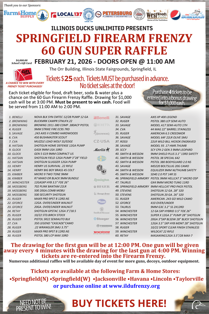 60 Gun Super Raffle, plus 4K Gift Card to Scheels and much more. Don't miss this event.