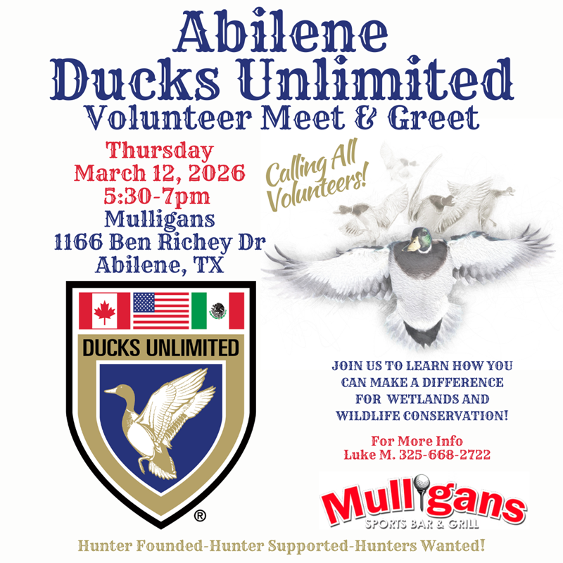 Come meet the team at Abilene Ducks Unlimited and help us plan the April 17th DU Dinner