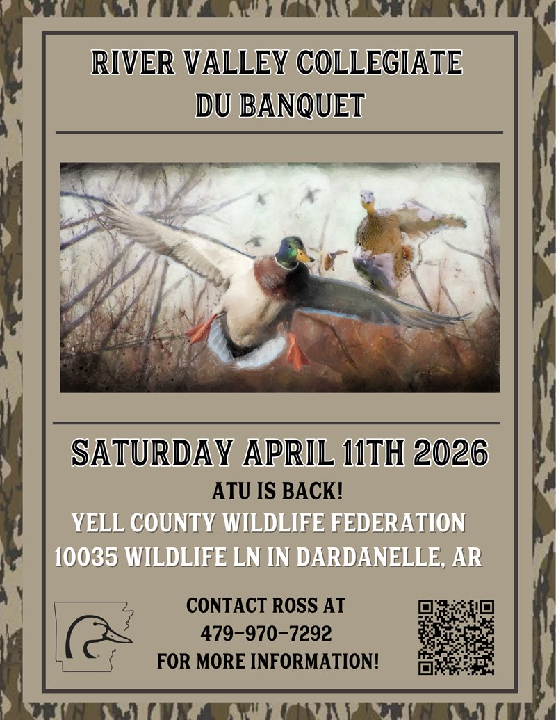Make plans now to join us on Saturday, April 11th for the River Valley Collegiate DU Banquet! Our event will have auctions and raffles featuring the 2026 DU merchandise and more!