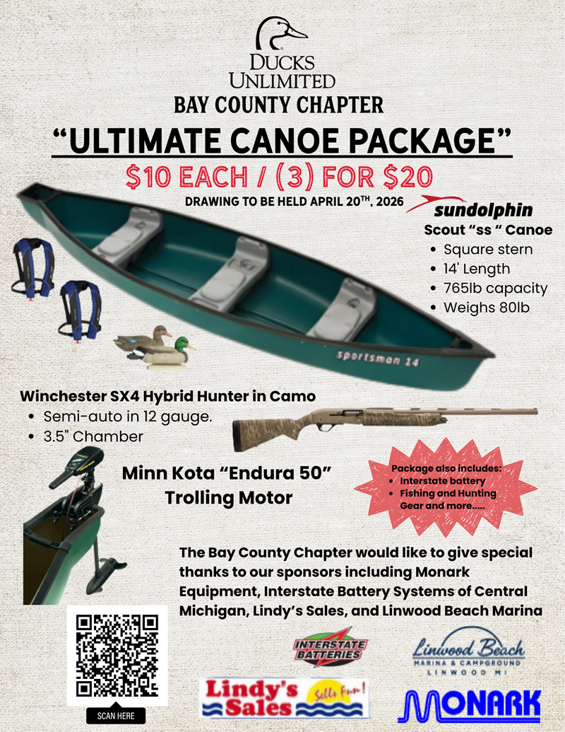 UPDATE 4/13: THERE HAS BEEN SOME CONFUSION REGARDING THESE TICKETS. THE TWO TICKETS AVAILABLE TO PURCHASE IN HERE ARE FOR THE CANOE PACKAGE ONLY. THE DRAWING WILL TAKE PLACE ON THE 20TH AT THE BAR NIGHT.