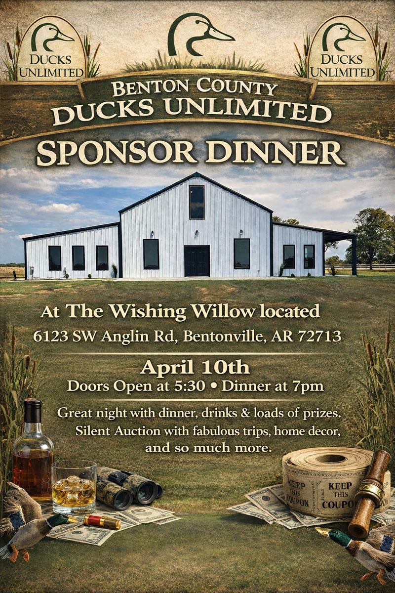 For more information on the event, to RSVP, or to find out how to join the Benton County DU chapter, please contact Brandon at 479-644-6642.