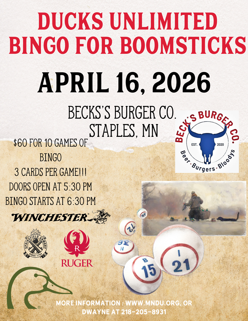 Bingo for Boomsticks at Becks Burger Company (Staples, April 2026)