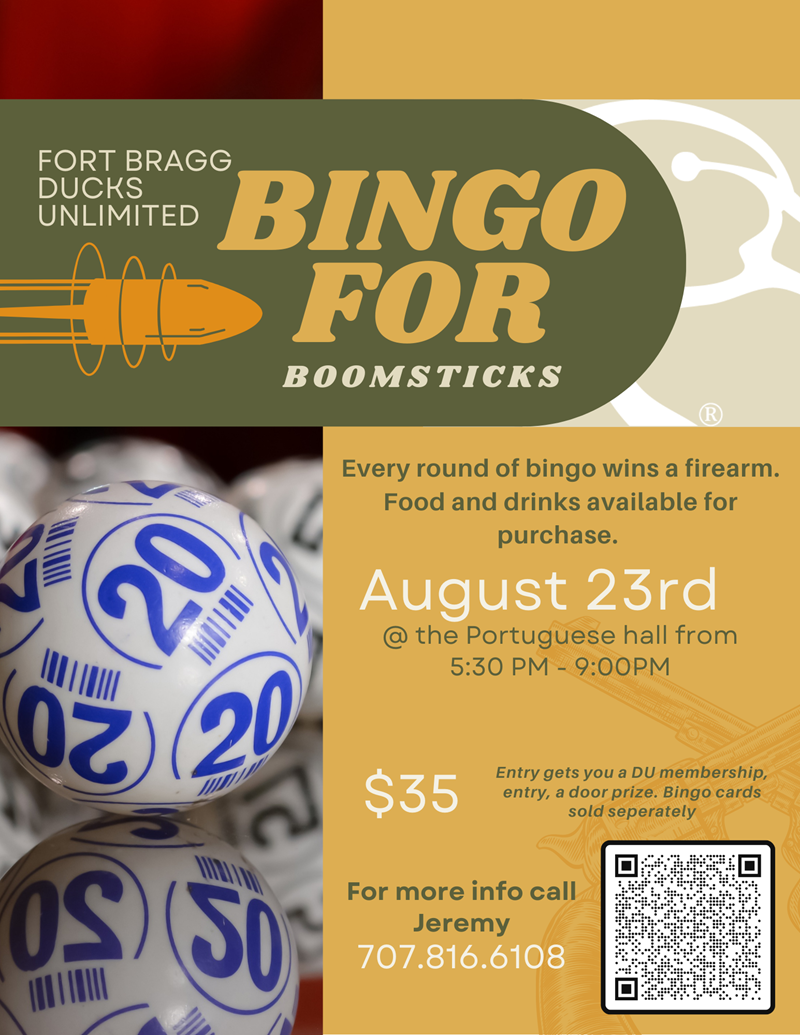 Every round of bingo wins a firearm. We will play 11 Rounds. There will be a huge raffle, games and more. Food and beverages sold separately.