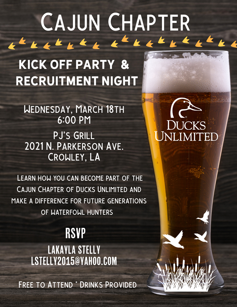 Come out and join the Cajun Chapter of Ducks Unlimited!