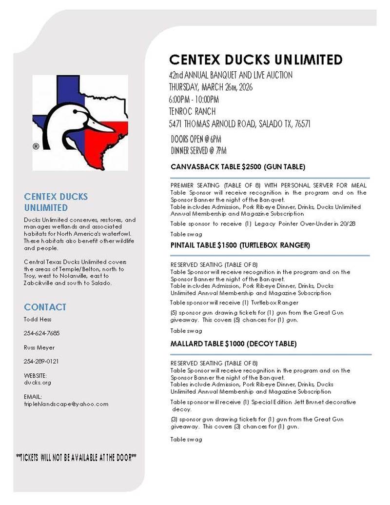 Gun, raffles, gear, great food and drinks!
