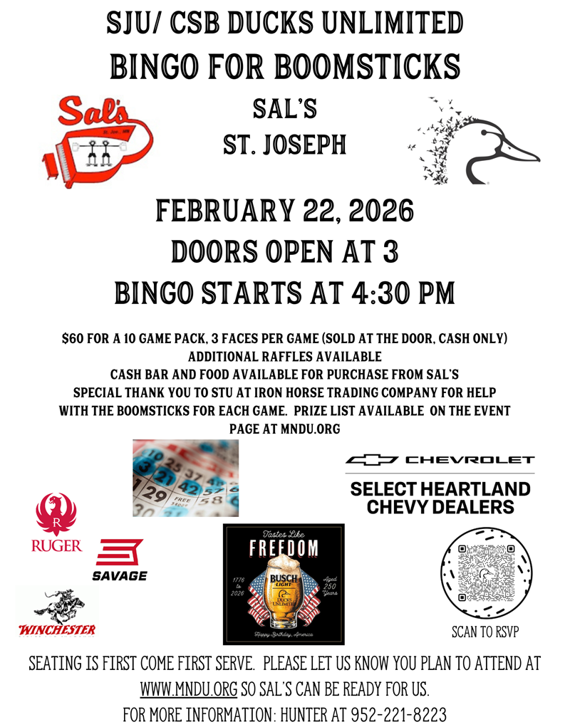 CSB/SJU DU Sportsmans 2026 Winter Bingo