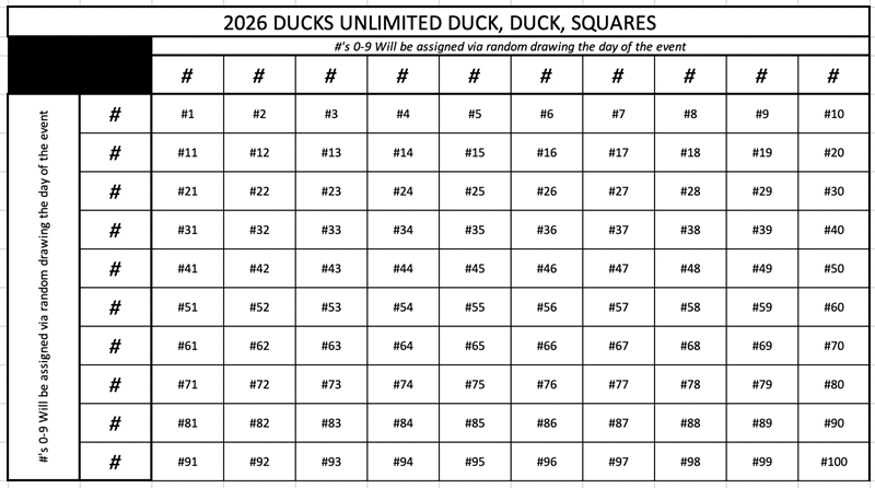 Each "square" purchased will be an entry into a separate gun drawing for a Ducks Unlimited Gforce Arms Over Under Filthy Pheasant .410 Shotgun. Each "square" will have a ticket placed into a bucket and drawn live at some point during the game. One winner will be drawn.