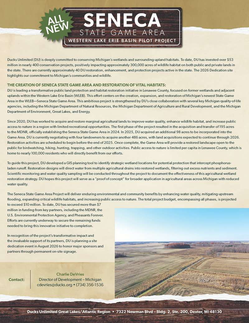 Ducks Unlimited 2026 Dedication Seneca State Game Area