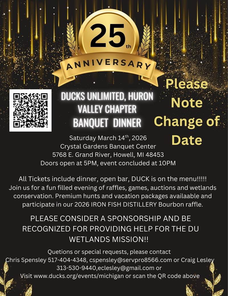 Ducks Unlimited, Huron Valley Chapter- Banquet - March 14th, 2026