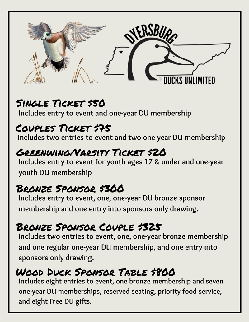 Join us to celebrate Ducks Unlimited and waterfowl conservation in Dyer County!