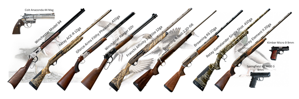 - Pintail ($3,000): Same as the Mallard table (including an upgrade to a premier prize/gun) - choose from over 20 high-end guns or optics such as a Browning A5 Sweet Sixteen, Benelli M2 Max-7, Set of 3 Henry Golden Boy's, and more. This also includes: