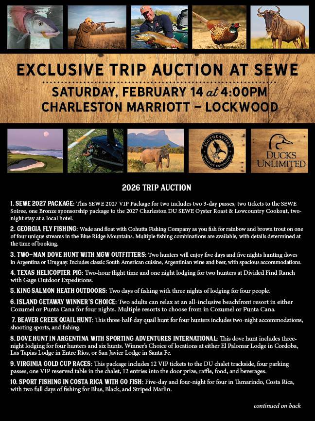Join SEWE & DU for an exclusive Trip Auction at the Charleston Marriott Saturday, Feb. 14 at 4:00pm