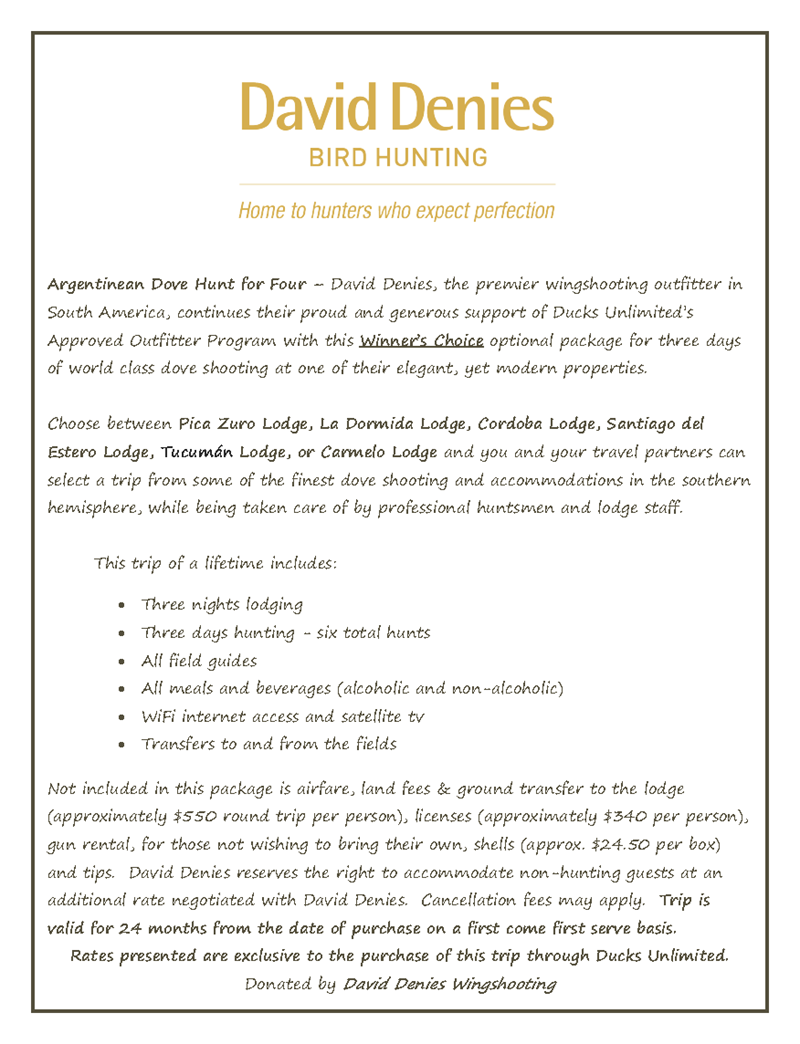 Throughout the evening, you will have the opportunity to win a variety of prizes including firearms, outdoor gear, Ducks Unlimited merchandise, gift packages, exclusive conservation items, and more, making it a memorable night of community, fun competition, and conservation support!