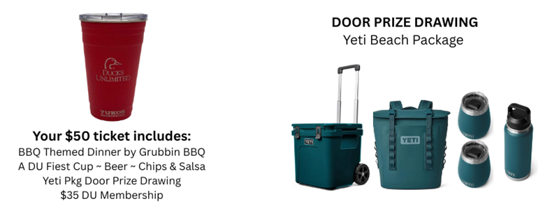 Join us for a fun-filled evening of Bingo and celebration for a great cause with lots of prizes, games, and auction items. We will be playing Super Bingo with two winners per game. It will include ten rounds of Bingo plus an 11th game Bonus round. Bingo cards may be purchased online or at the event. Lots of guns and cool prizes to win. Your $50 ticket includes a themed dinner by Grubbin BBQ, a DU Fiesta Cup, Beer, Chips & Salsa, Door prize drawing for a Yeti Beach Package, and a $35 DU Membership. We have various reserved table options for you to invite your crew and have fun together. Reserved tables may include drink tickets. Aculpoco will be serving up chips and salsa, Margaritas, and other beverages.
