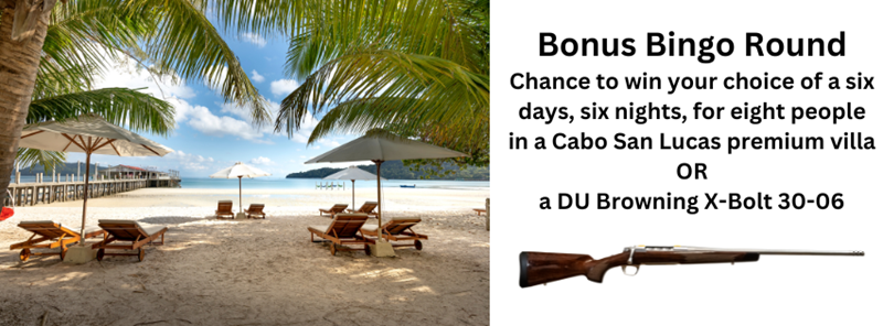 BINGO GAME SPONSORS WANTED - Sponsor a Bingo game for $350 and receive buisiness promo at the event and one chance in a drawing for a DU Yeti cooler.
