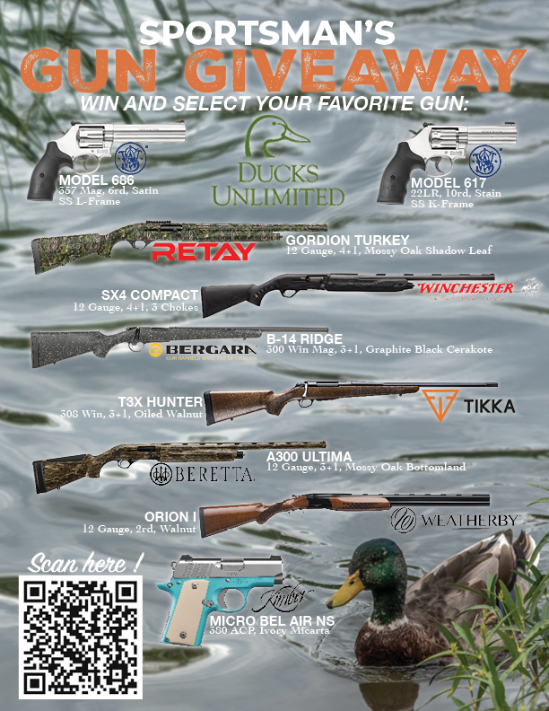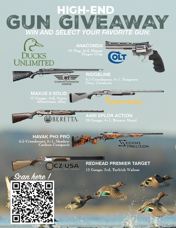 Sponsorship includes admission, reserved table, dinner for 8, a Bronze Sponsor ($250 value) annual membership for table buyer, 7 annual DU memberships for guest, and one selection from the Gun Giveaway Banner below!