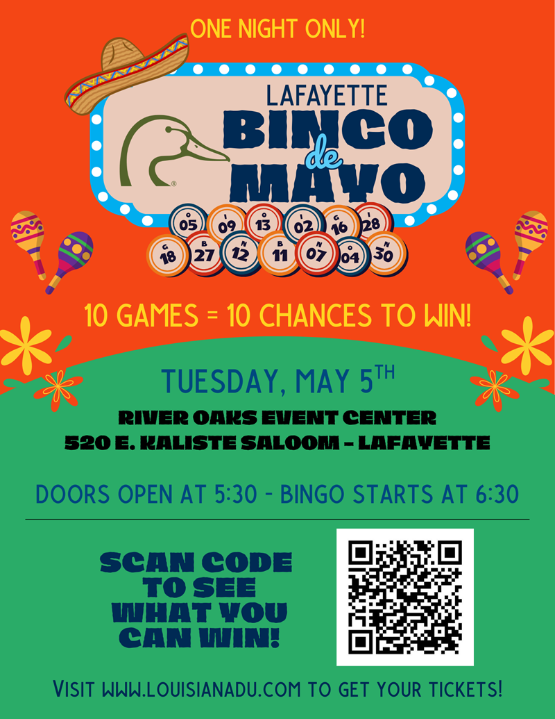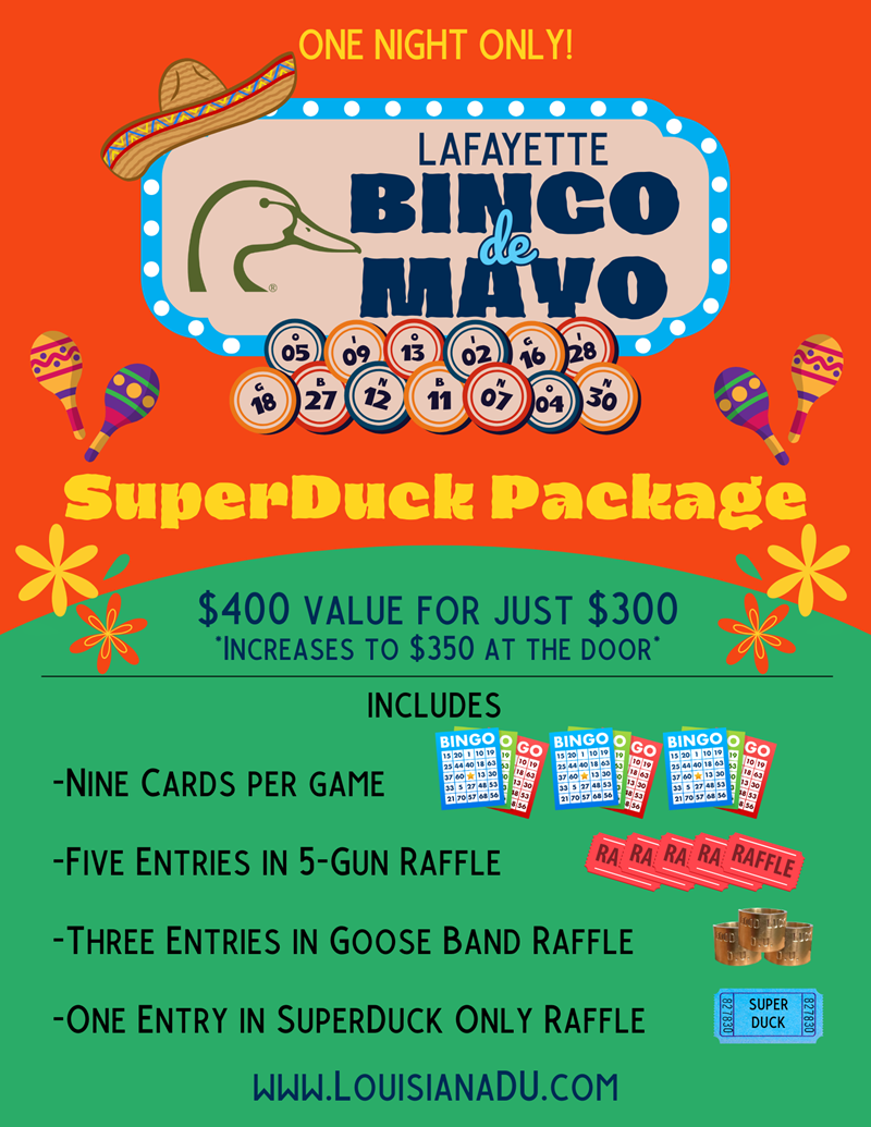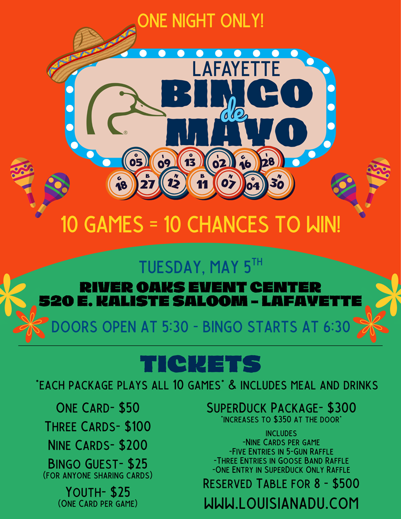 Join the Lafayette Chapter of Ducks Unlimited for our annual Duck Bingo!