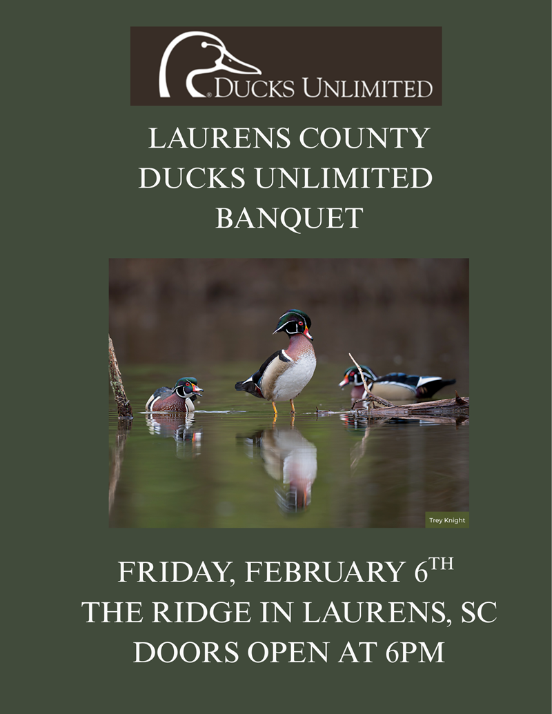 Join us at The Ridge for our Laurens County Annual Ducks Unlimited Banquet! Doors open at 6:00 PM!