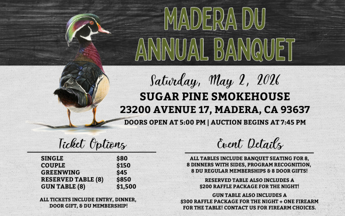 Madera DU is back! Enjoy dinner, auctions, games, giveaways and much more!