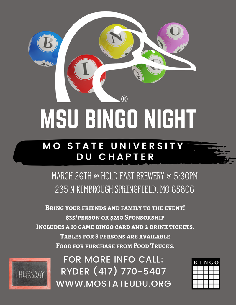 MSU DU Spring Bingo. 10 games for Fantastic Prizes!