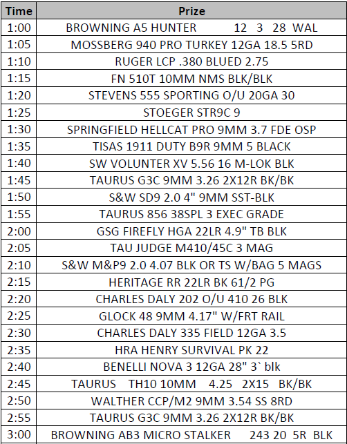FOR 2 GUNS AND 8 CASH PRIZES