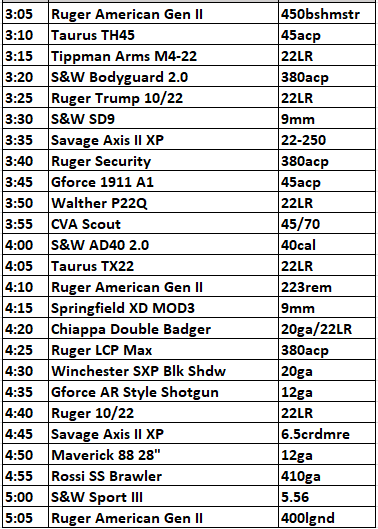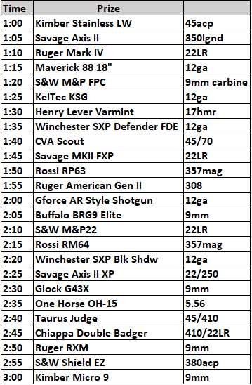 FOR 5 GUNS AND 5 CASH PRIZES