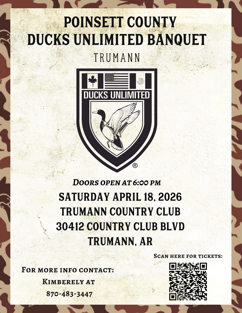 Please RSVP to Kimberly if you plan to attend. For more information about the event, to purchase tickets, or to join the Poinsett County DU committee please contact Kimberly at 870-219-0782 or jaks1@ymail.com.