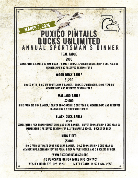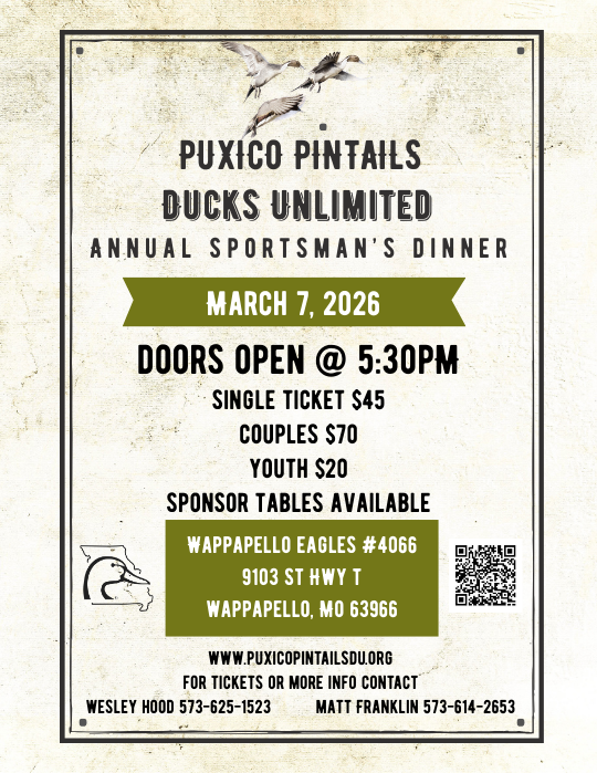 Puxico Pintails Sportsman's Dinner. Join Us!