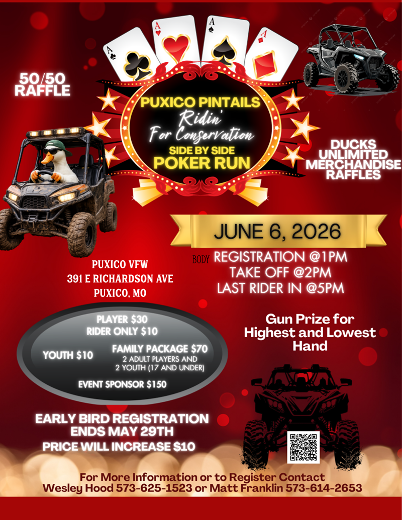 Puxico Pintails UTV Poker Run. Join us for a great ride!