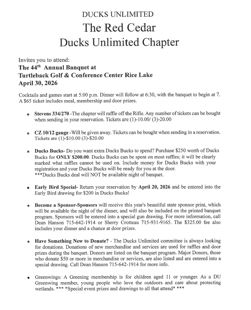 Red Cedar Barron County Chapter Banquet (Rice Lake, WI)