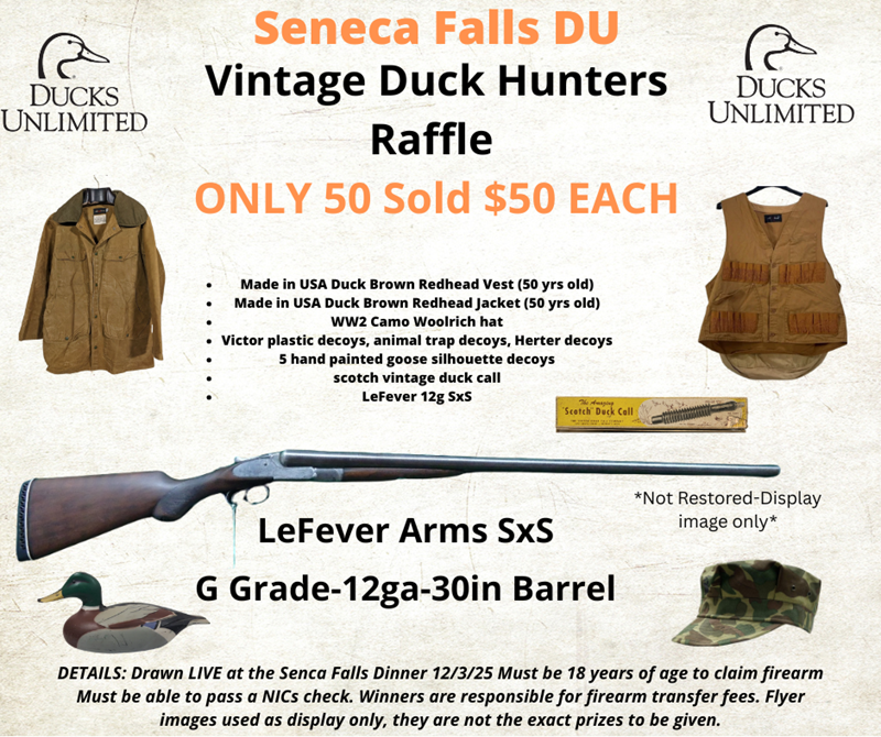 Firearms, hunting gear, waterfowl artwork, antique and new decoys, everything you need to win BIG & have one heck of a great time rasing money for wetlands conservation!