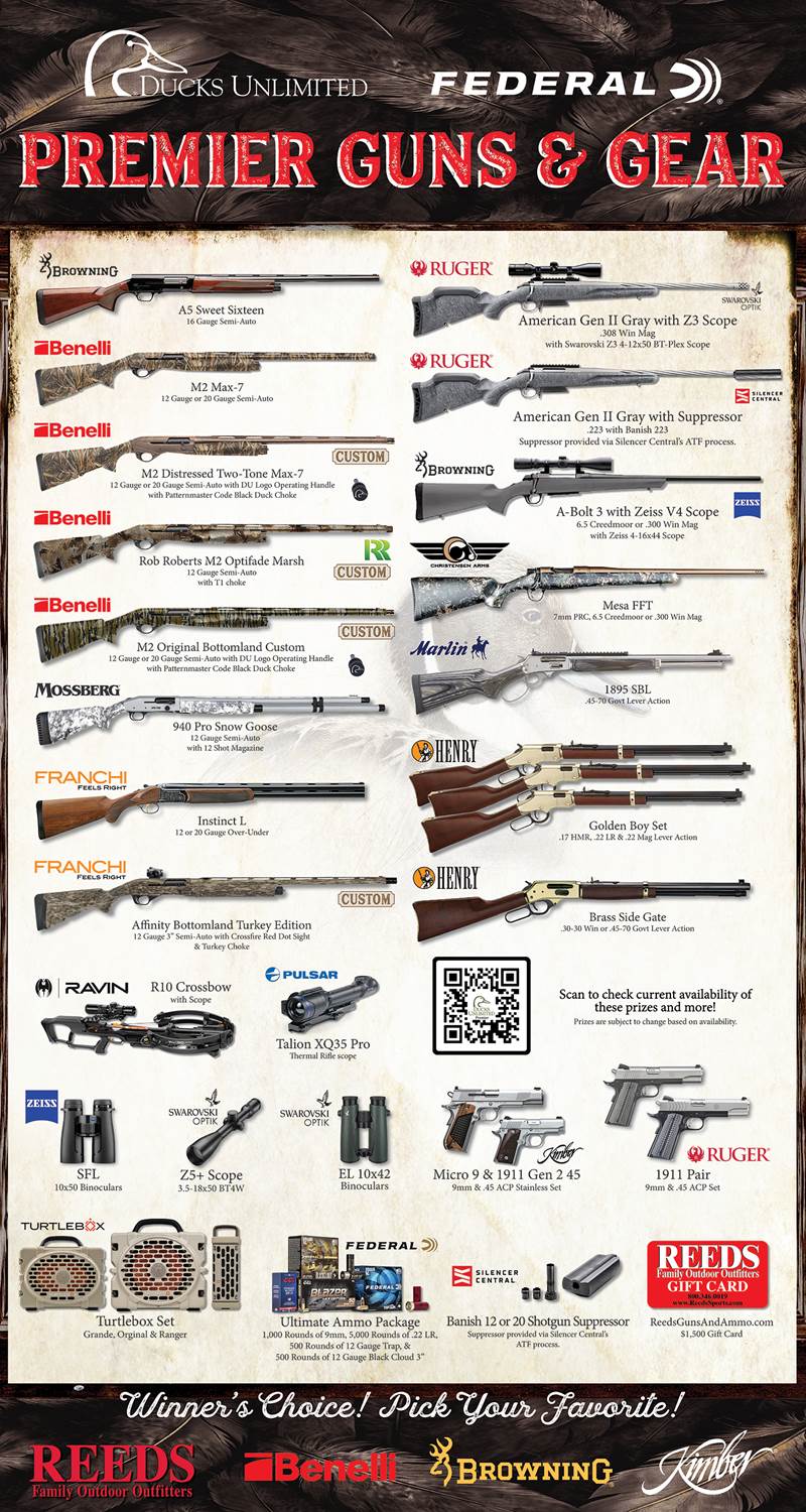 Don't forget to get your limited Swag Bag. Only $400 and received a $500 raffle pack, a bag of DU Swag, and a 1-in-40 chance to win choice pick from our Premier Gun banner below. These sell out quick so don't wait. If you are reserving a table make sure your guests jump online and reserve their swag bags.