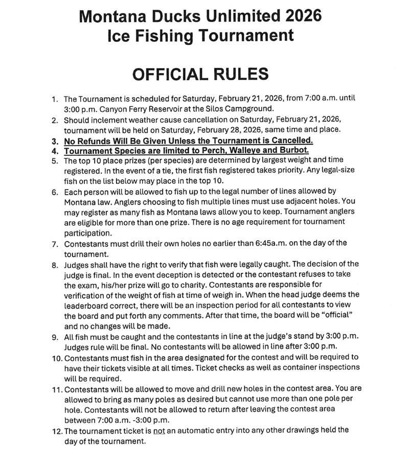 Sixth Annual Montana Ducks Unlimited Ice Fishing Contest
