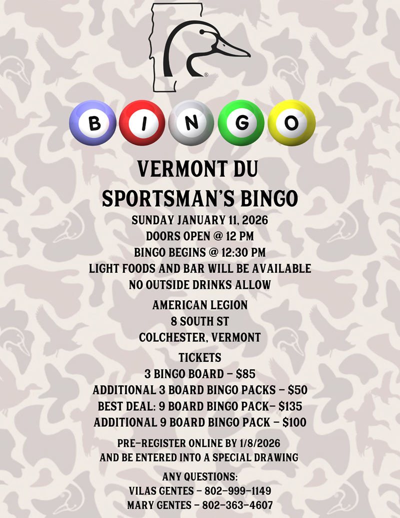 Join Vermont DU for an afternoon of bingo with lots of prizes