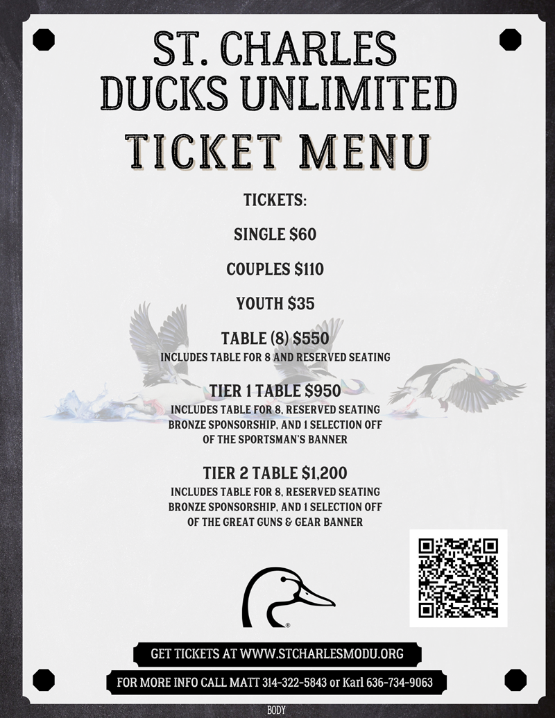 St. Charles DU Dinner. We have had a few cancellations. 16 tickets Remain! FC,FS