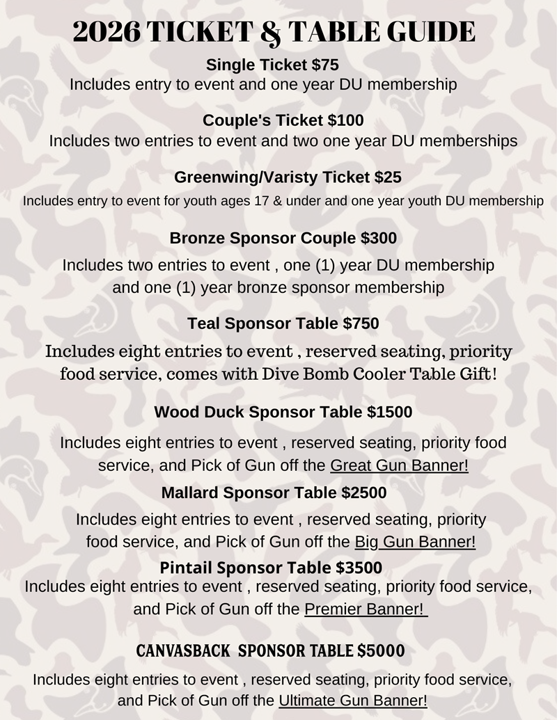 WOOD DUCK SPONSOR TABLE OPTIONS $1500