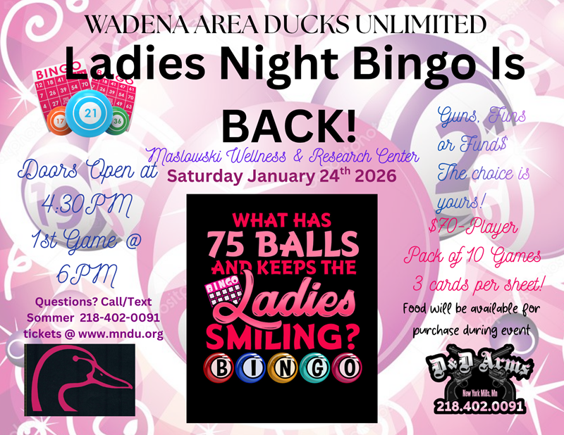 Wadena Area DU Ladies Only Night Bingo (Wadena)
