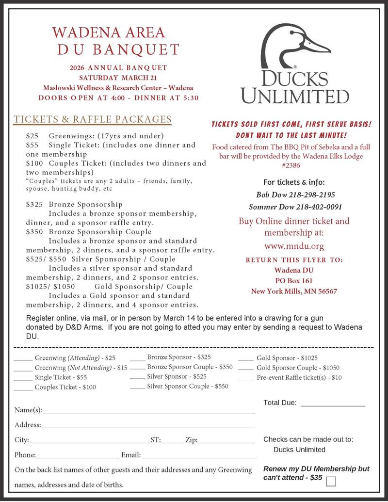 Wadena Area Ducks Unlimited 2026 Banquet
