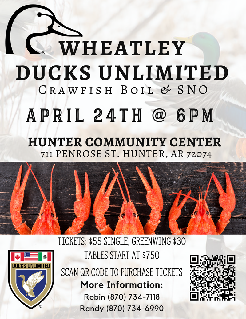 For more information, or to volunteer on the Wheatley DU chapter, contact Robin at 870-734-7118.
